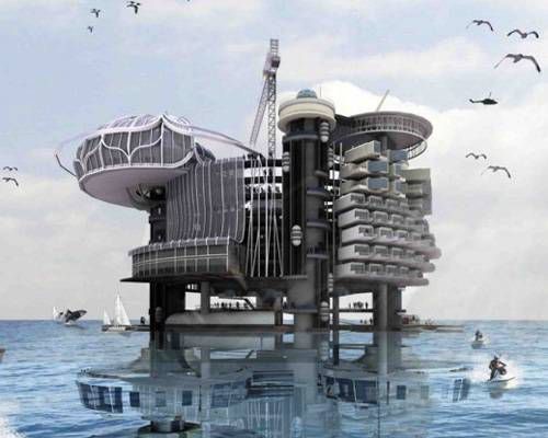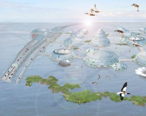 The Dutch are accustomed to building in flood-prone areas so perhaps it’s only natural for them to construct floating cities to cope with climate change. According to design company DeltaSync, such cities would be built to rise along with the sea level. Large blocks of polystyrene foam connected by frames of strong concrete would be used to float the dome-shaped buildings, and these structures would be linked via floating pedestrian bridges. Floating highways would even connect these aquatic cities, and heat drawn from the ocean’s surface would heat the city.