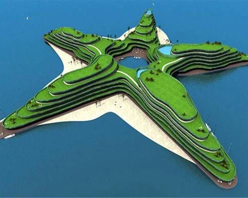 Even more ambitious than Sowa’s island is architect Ramon Knoester’s plan to build Recycled Island, a floating island the size of Hawaii made entirely of plastic from the Great Pacific Ocean Garbage Patch. Aside from being composed of recycled plastic, the island would also be completely self-sufficient, supporting its own agriculture and getting its power from solar and wave energy. When it’s complete, Knoester hopes the island will be home to at least half a million residents who can enjoy the artificial island’s seaweed harvest and compost toile