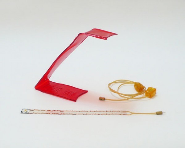 So what makes it possible to eat this desk-top lamp without taking a trip to the emergency room? Well, the Bite Me is made of biodegradable plastic derived from vegetable glycerin and agar, a gelatin that comes from sea algae. The LED light-source is attached to a clear plastic adhesive strip, with electricity conducted to the top by laser-cut metal lines that spell out the name of the product and its ingredients, according to Dezeen. Each Bite Me lamp comes with two electric cords, one that connects to the low voltage power converter and another that plugs into a computer.