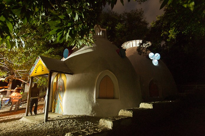 But that’s not all; besides these methods, the superadobe “earthbag” building technique is also being used. Originally developed by architect Nader Khalili and Cal-Earth, the practice involves layering long fabric or plastic tubes or bags filled with sand, clay, water and fibrous material like sticks, straw, and/or manure to create a domed compression structure that is resistant to earthquakes, hurricanes, floods and fire.