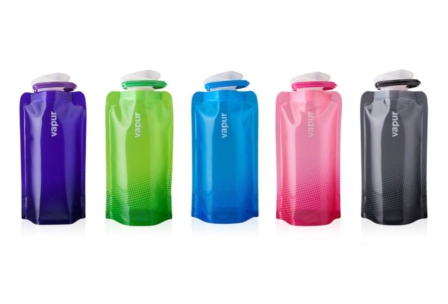 Also new for Vapur, is the Shades collection of colorful and cost friendly flat bottles. Shades Anti-Bottles all have wide mouth opening, and integrated clips. Available in 0.7 Liter and 1.0 Liter sizes, they are versatile and efficient, folding up when empty for easy storage in a purse or pack.