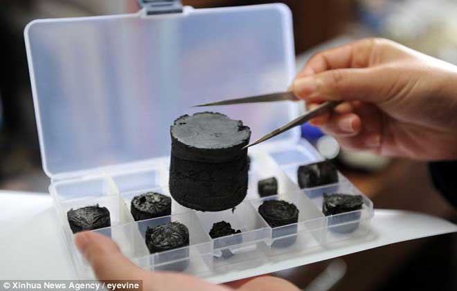 Wondrous: A researcher lifts a piece of graphene aerogel by the static electricity on the glass stick in a lab at Zhejiang University. The sponge-like matter is made of freeze-dried carbon and graphene oxide