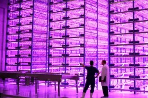 And oh, yeah, instead of being traditional greenhouses lit by fluorescent lamps, he says these plant factories will probably be “pinkhouses,” glowing magenta from the mix of blue and red LEDs.
