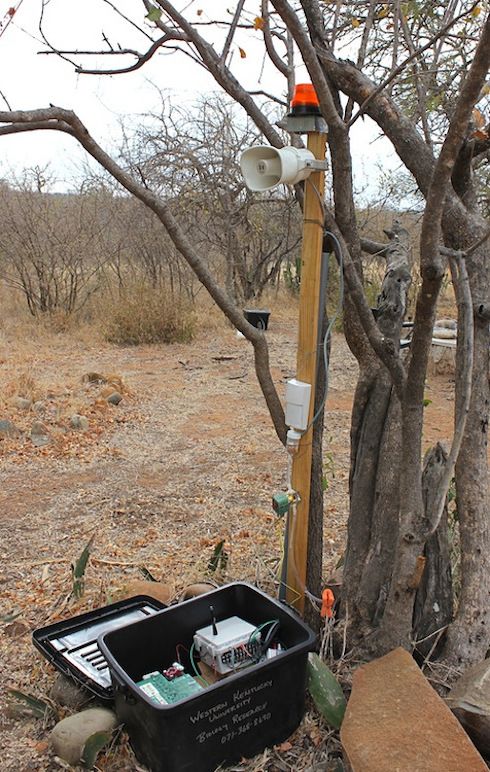 Thanks to funding from the National Science Foundation and the Bill & Melinda Gates Foundation’s BREAD program, a team of scientists, including wildlife ecologist Michael Stokes and elephant expert Bruce Schulte, from Western Kentucky University (WKU), have been developing a motion activated scarecrow that uses a hacked iPod to control a variety of animal deterrents.