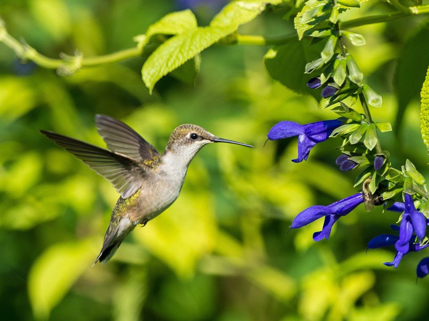 A hummingbird finds nectar in some blue sage. (Photo: DC Gardens/flickr)
