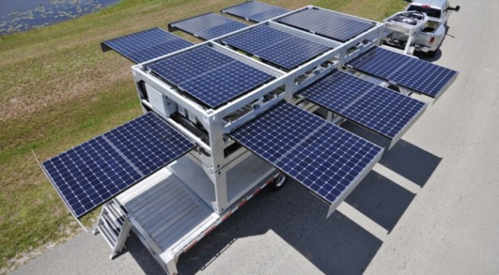 This has to be one of the coolest pieces of solar powered off grid technology ever seen. It’s basically a 15kW power station housed in a shipping container, which makes it easily deployable to any location in the world at a moments notice. It can be shipped by rail, by sea, and of course by truck.