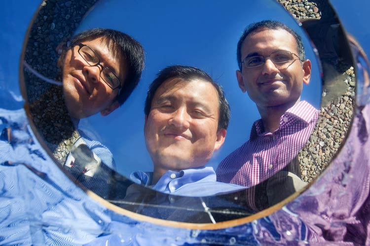 Doctoral candidate Linxiao Zhu, Professor Shanhui Fan and research associate Aaswath Raman are members of the team that invented the breakthrough energy-saving material.