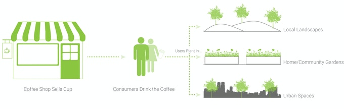 “A coffee cup that has native seeds embedded within the material to be used for reforestation in your local communities”.