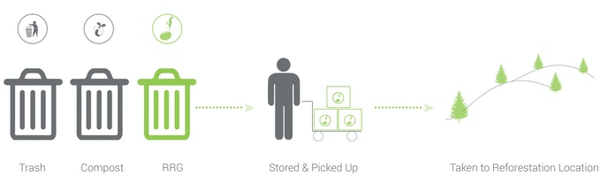 If the consumer decides to discard the cup, they can place the cup in a special trash can where Reduce. Reuse. Grow. (or third parties) can come in and take the cups for local reforestation purposes.