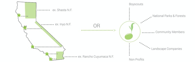 Reforestation locations can be anything from small community projects to State or National parks where fires, over grazing or other habitat destruction has happened and additional native planting are needed in order to replenish those areas!