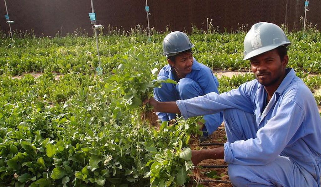 Workers at the Sahara Forest Project’s pilot facility in Qatar. (Sahara Forest Project)
