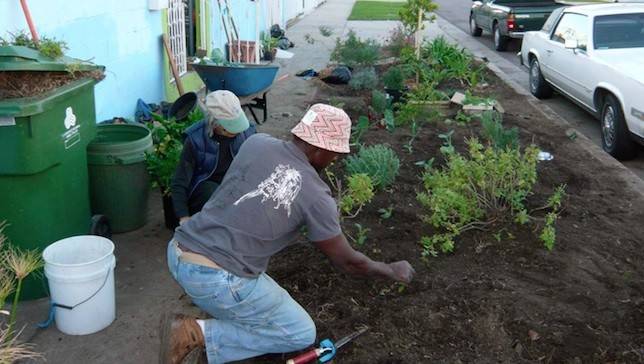 The start of Ron Finley’s famed parkway ‘food forest’ in South Los Angeles, 2011. (Photo: LAGreenGrounds/flickr)