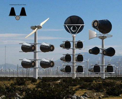 The CWP Compressed Air Enclosed Wind Turbine is the brainchild of 89 year old Raymond Green, who invented and patented his unique version of wind power generator. Green believes these units can be manufactured in sizes ranging from small personal-use/portable units up to massively sized units that can be installed at wind farms, and that they hold significant advantages over traditional turbine designs.