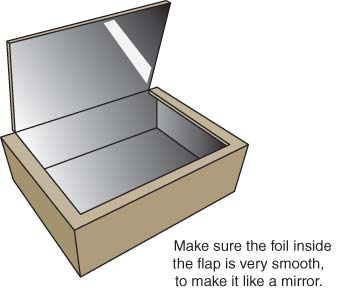 Line the inside of the box with aluminum foil, again gluing it down and making it as smooth as possible.