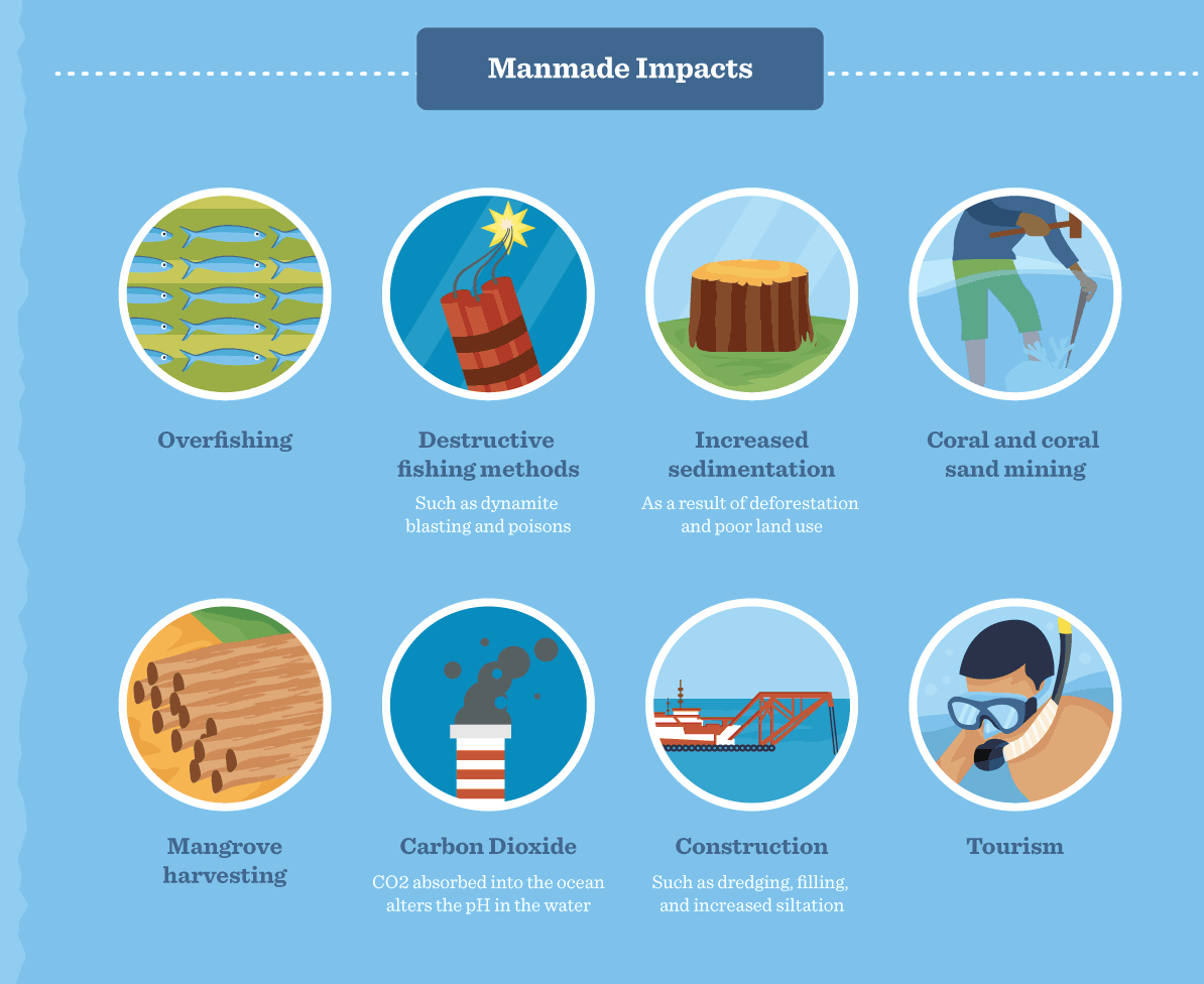 The importance of coral reefs is unquestionable, but these systems are under serious threat. We have already lost 27 percent of the world’s reefs, and if the current rate of reef destruction continues, we will have lost 60 percent of the world’s coral reefs within the next 30 years. The threats facing our reefs are both natural and manmade.