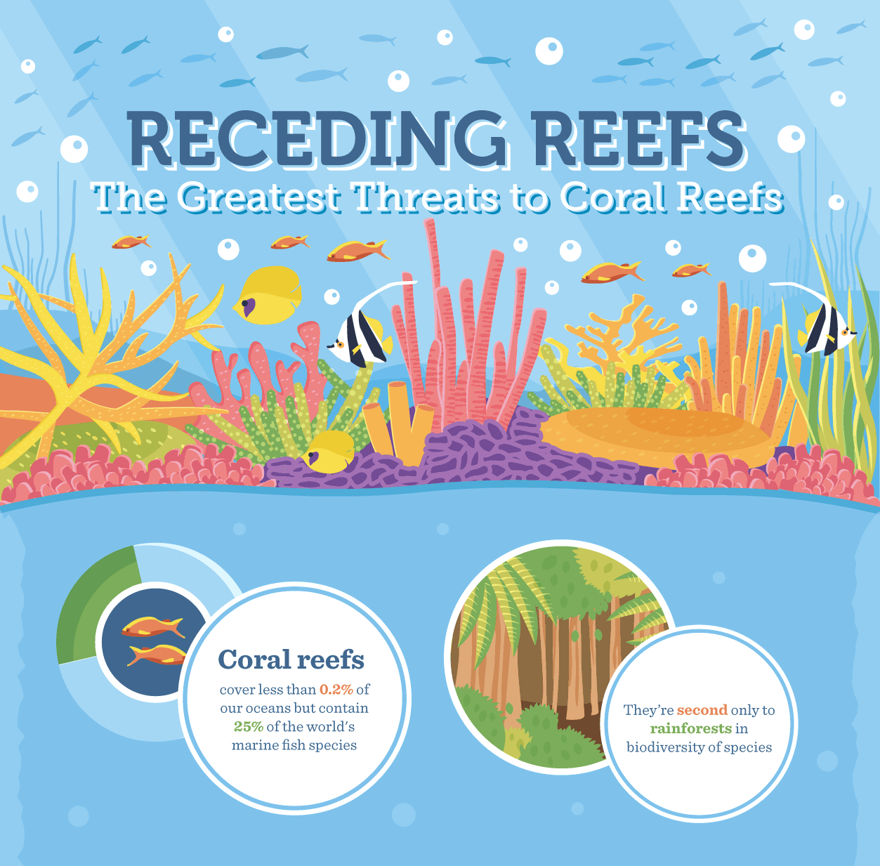 The threats to coral reefs are numerous, and with so much damage already done, the fight can seem hopeless. However, there are things we can do to save these precious resources. Practice safe and responsible diving and snorkeling when visiting coral reefs. Don’t purchase items made from coral or other threatened marine life. Practice water conservation. Volunteer for a reef cleanup, or join an environmental organization that supports marine ecosystems. Check out our infographic to learn more about the importance of coral reefs and what you can do to help protect them.