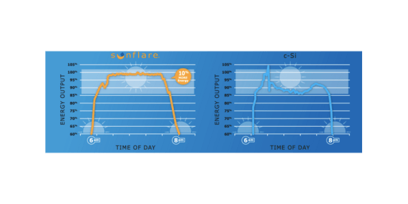 The improved absorption combines with better high-temperature performance to increase efficiency yet further, generating more power at midday when temperatures are hottest.