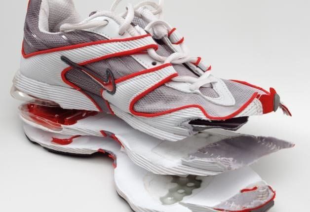 Nike The first step to making Nike Grind is slicing old shoes in half.