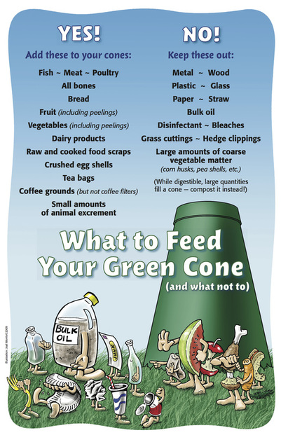 The beauty of the Green Cone is that it just keeps going, never filling up like a traditional composter. I’ve had mine for two years and love it. Animals cannot access the food scraps, as they are located underground. It can be used in a container on any surface (parking lots, roofs, apartment balconies). The only downside is not having rich, dark compost for your gardens, but there’s no reason why a Green Cone couldn’t be used alongside a traditional composter, thereby broadening the list of what you can dispose of in your own backyard.