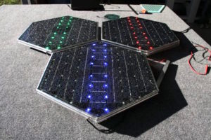 Solar Roadways’s hexagonal solar panels feature LED lighting and smart technology that allows them to “communicate” with each other. Photo credit: Solar Roadways