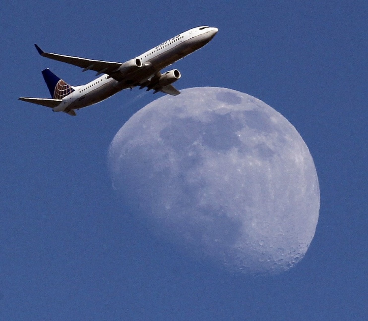 A United Airlines passenger airplane passes over Whittier, Calif., on its way to Los Angeles International Airport, Sunday, July 26, 2015. (AP Photo/Nick Ut)