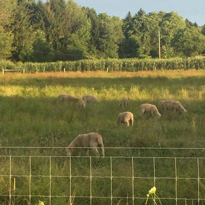 Sheep take their turn grazing Walnut Hill Farm’s grasses, which help hold carbon in and are also browsed by cows, chickens, and turkeys. (Credit: Walnut Hill Farm)