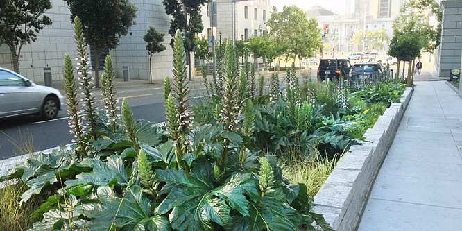 At Antonia Bava Landscape Architects we have had the privilege of designing and overseeing ongoing maintenance for the landscaping within the Living Machine at the LEED Platinum SFPUC Administrative Office Building at 525 Golden Gate Ave, San Francisco. This experience has given us a unique insight and understanding of the growing conditions, constraints and challenges of designing a beautiful urban planting within a system that filters grey and black water for reuse.