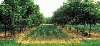 According to the Association for Temperate Agrofiorestry, “Agroforestry is a land management system that optimizes the benefits from the biological interactions created when trees and/or shrubs are deliberately combined with crops and/or livestock. There are five basic types of agroforestry practices today in the North America: windbreaks, alley cropping, silvopasture, riparian buffers and forest farming. Within each agroforestry practice, there is a continuum of options available to landowners depending on their own goals (e.g., whether to maximize the production of interplanted crops, animal forage, or trees).”
