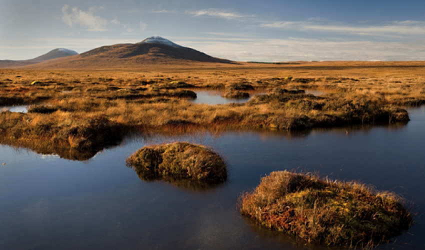 Peatlands provide vital natural services in tackling climate change and maintaining our water supply as well as being beautiful havens for wildlife and places for people to enjoy. Peatlands are ancient landscapes in which the naturally wet conditions preserve dead plant material as peat. Carbon dioxide removed from the atmosphere by photosynthesis is effectively ‘locked up’ in the peat for millennia, thereby acting as ‘carbon sinks’ which keep CO2 emissions down in a way even more effectively than rainforests.