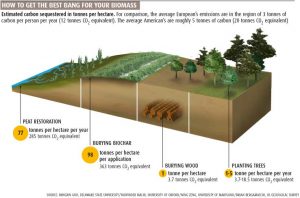 The ability of peatland to absorb and store carbon in comparison with other biomass carbon storage techniques (Lovett, R. (3rd May 2008) Burying biomass to fight climate change, New Scientist Magazine).