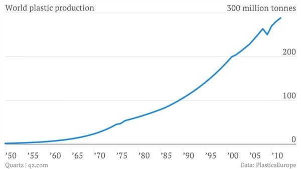 Every day, more and more plastic keeps being produced, used and thrown away. In countries where disposable cups are made of plastic, for example, it may take only seconds for one to leave the package, be used, and end up in a trash can. So much plastic is being consumed that there is an area bigger than France of throw-away plastic swirling at all depths in the North Pacific Ocean. It has become so ubiquitous that birds are using it to build their nests.