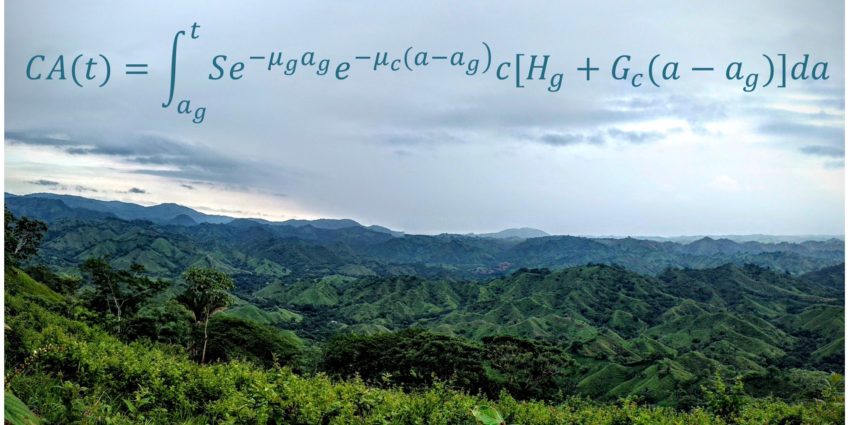 Image credits: Landscape photo by Trevor Caughlin. Yep, the equation in the background is the primary model in the new paper!