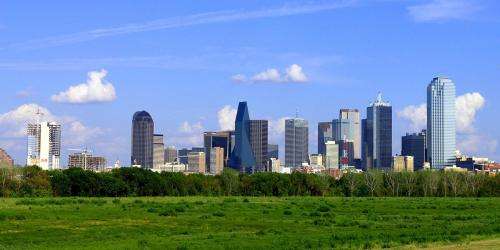 The downtown Dallas, Texas (USA) skyline from a levee along the Trinity River. Facing southeast. Credit: drumguy8800/Wikipedia