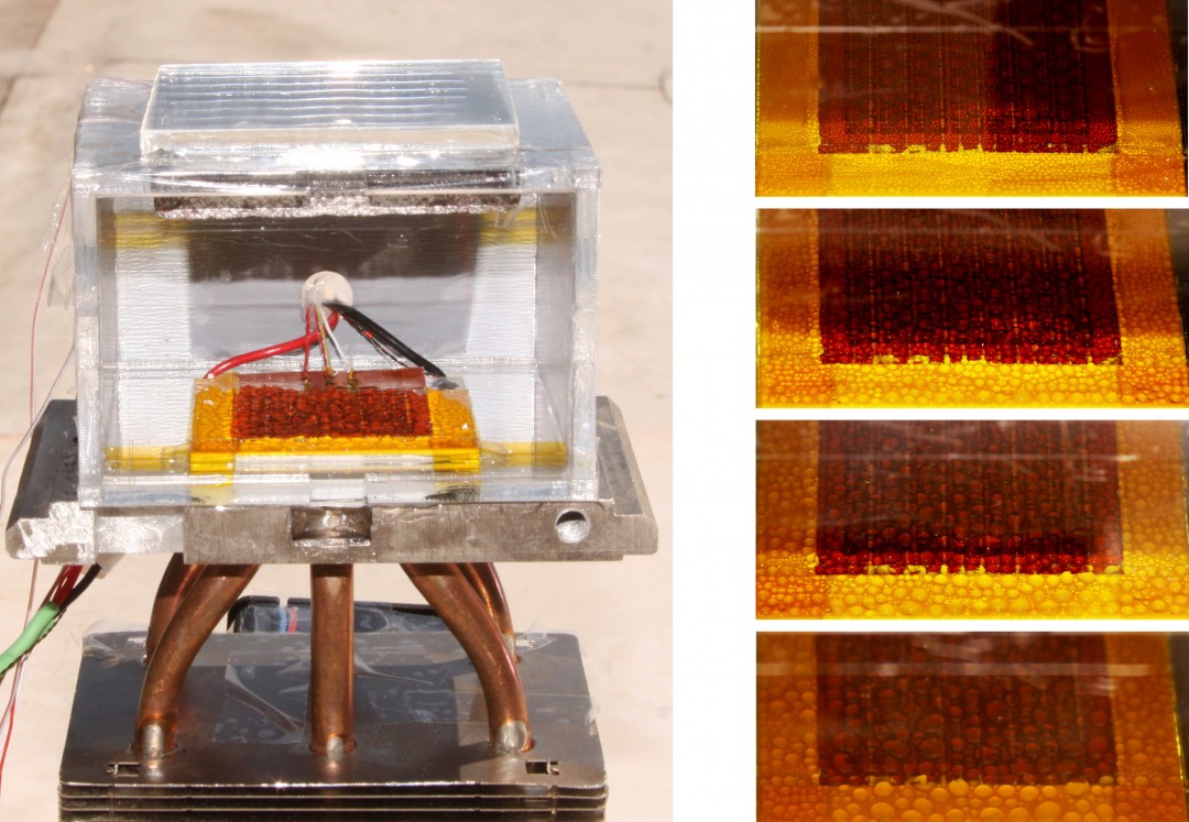 Images of the device’s condenser over time (on the right, running from top to bottom) show a steady increase in water droplets through the day.