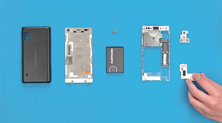 Modular electronics such as this smartphone can reduce e-waste burdens by making it possible to reuse still-functional components when a device goes down. Photo courtesy of Fairphone