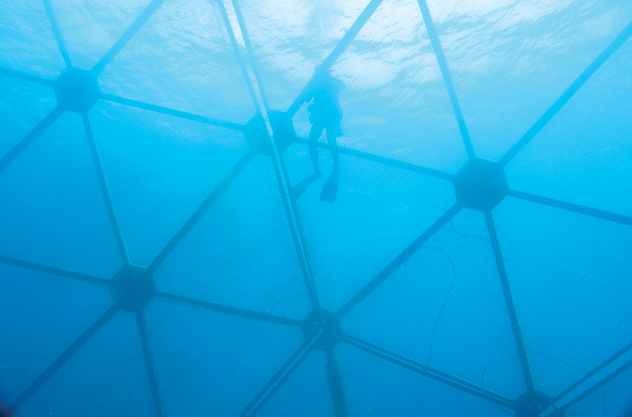 Miles off shore, anchored in carefully selected currents, the pens of an open ocean farm can look like submerged circus tents or huge geodesic bubbles. Tougher than their close-to-shore cousins, these giant operations are capable of raising thousands of tons of bass, snapper, tuna and other ‘finfish’ while staying relatively close to customers in what is now a global market for seafood.