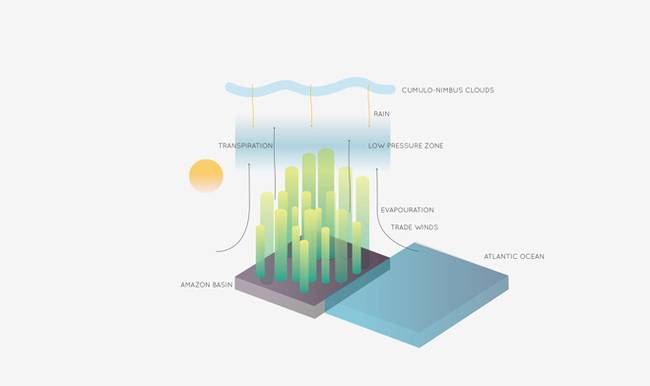 There’s also a bit of cutting-edge science rolled in: Ghosh was also inspired by the biotic pump theory, a recent hypothesis about how massive water vapor condensation from forests may be a major driver on atmospheric pressure and wind movements. That’s may be why large rainforests like those found in the Amazonia may be responsible for moving many of the weather patterns around the globe.